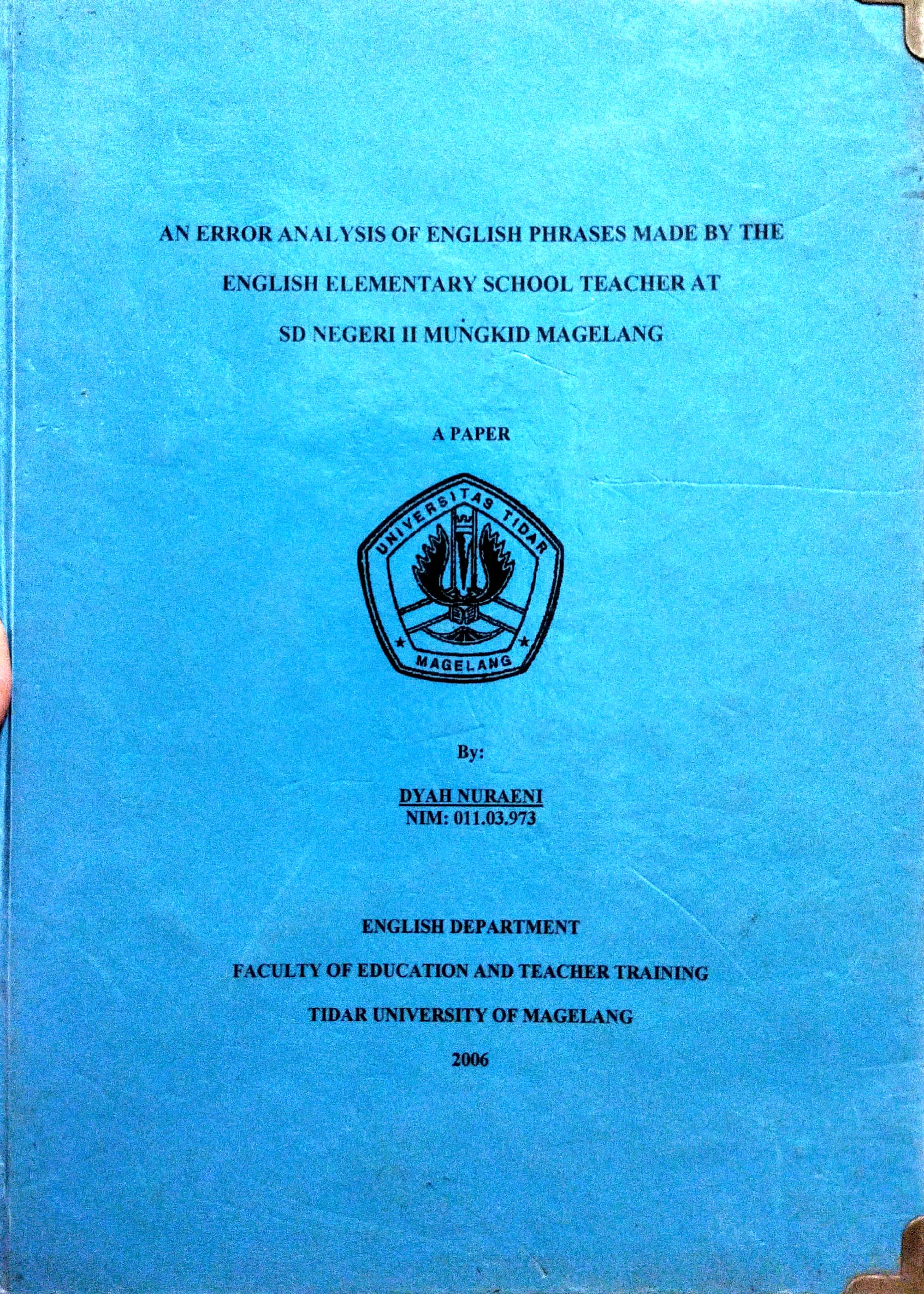 SKRIPSI AN ERROR ANALYSIS OF ENGLISH PHRASES MADE BY THE ENGLISH ELEMENTARY SCHOOL TEACHER AT SD NEGERI II MUNGKID MAGELANG